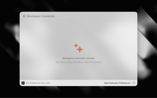 • Get Started with Ray Code: Shows the current workspace status and provides quick actions to open preferences or view Raycast’s setup guide.