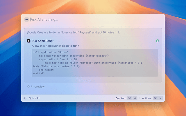 Allows Raycast AI to run Python, AppleScript, and Bash code.