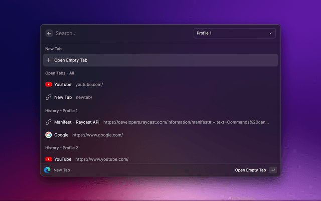 Search open tabs, bookmarks, collections and history in Microsoft Edge.