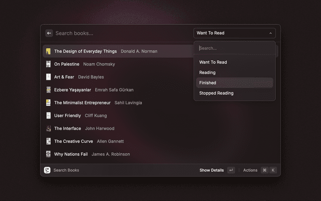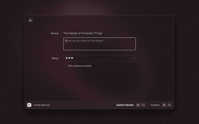 Track, edit and review your literal books from command bar.