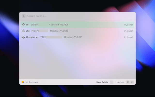 Unofficial Raycast extension for tracking packages and shipments using Ship24's comprehensive tracking service.