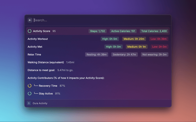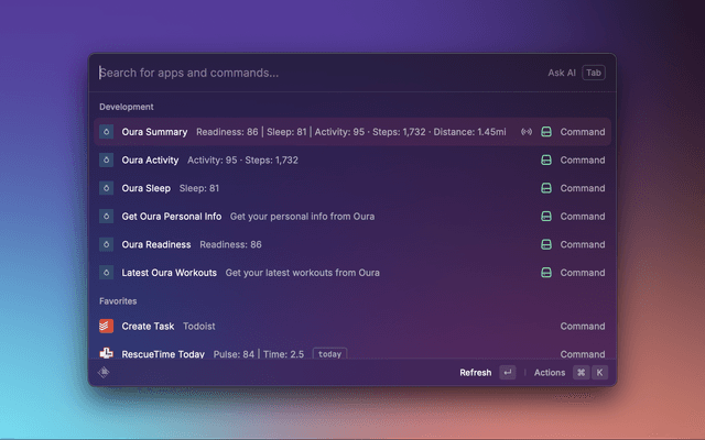 In order to get your Oura data directly available in Raycast, follow these steps:
