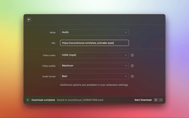 A Raycast extension that allows you to easily download videos & audio from popular social media platforms, powered by cobalt's API. A list of supported services can be found here.
