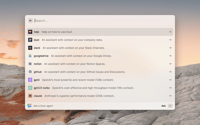 Directly ask something to the Dust, GPT-5 or Claude-4 assistants.