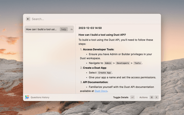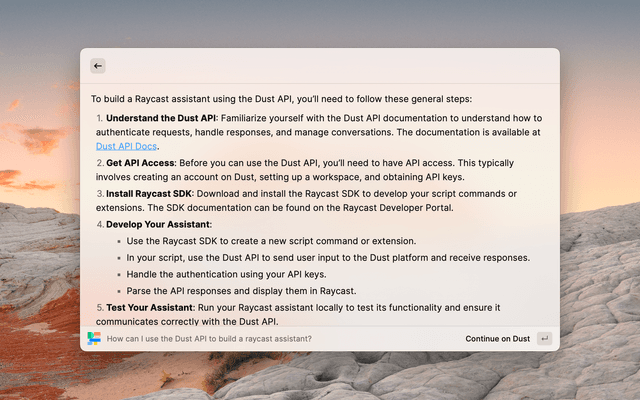 Query the dust.tt service extention for Raycast