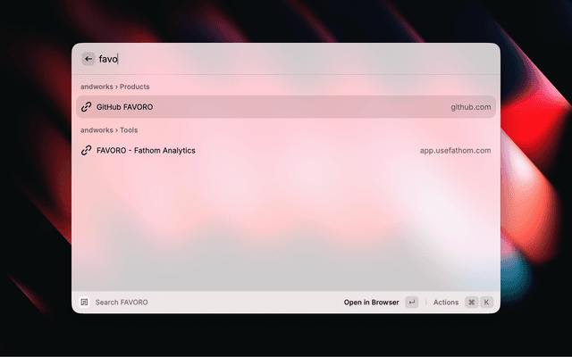 Access your FAVORO bookmarks directly from Raycast, even faster