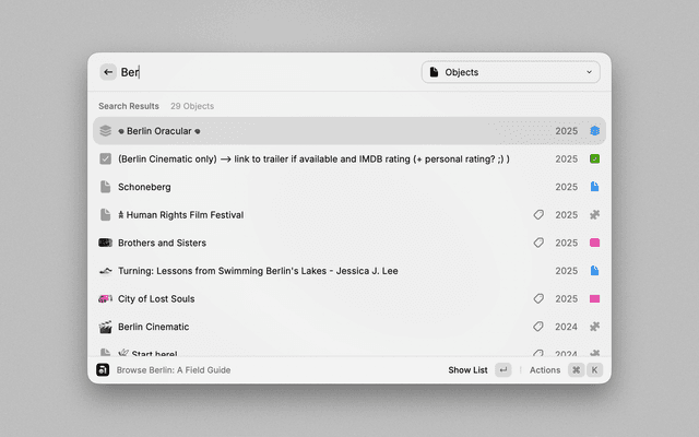 - Interact: Press Enter to view the object in Raycast or Command+Enter to open it in Anytype.