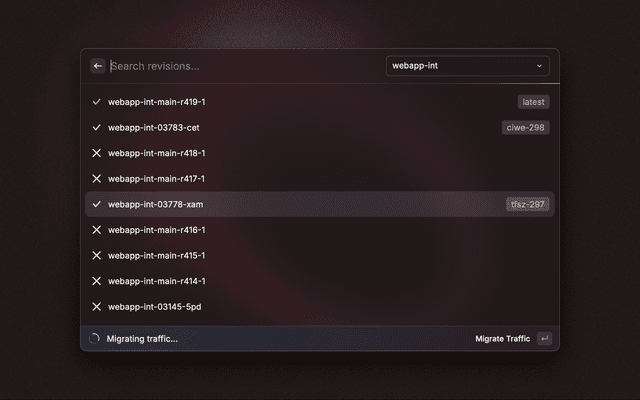 This Raycast extension allows you to manage Google Cloud Run services directly from your Raycast dashboard. With this extension, you can easily migrate traffic for your Cloud Run services to specific revisions, streamlining your deployment workflows.