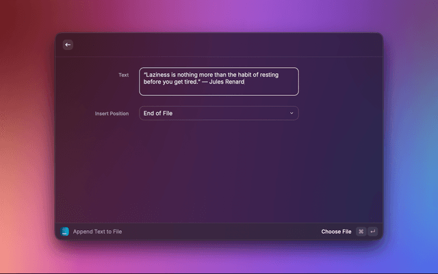 Append quick ideas, quotes, and notes to your text files without leaving your current context.