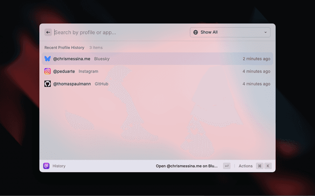 • Open Profile Command: Quickly open profiles across multiple social apps