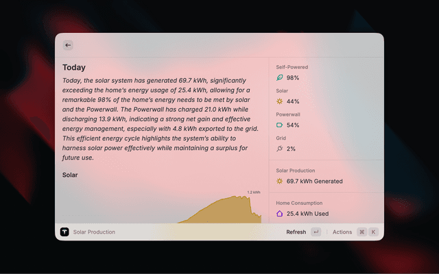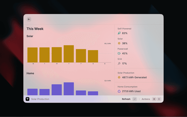 Monitor your Tesla solar panels and Powerwalls from Raycast.