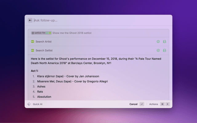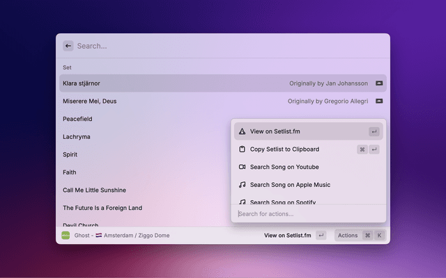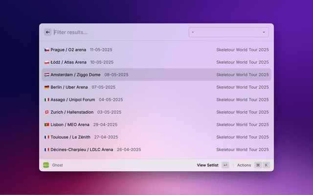 To use this extension you need a setlist.fm account and an API key. You can create your API key here: https://www.setlist.fm/settings/apps