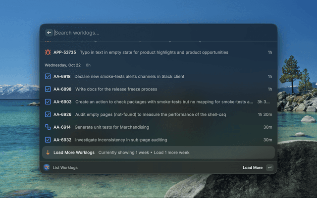 - Add Worklog: Quickly log work hours to any issue with flexible duration formats (1h, 1h30m, 2h)