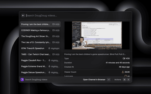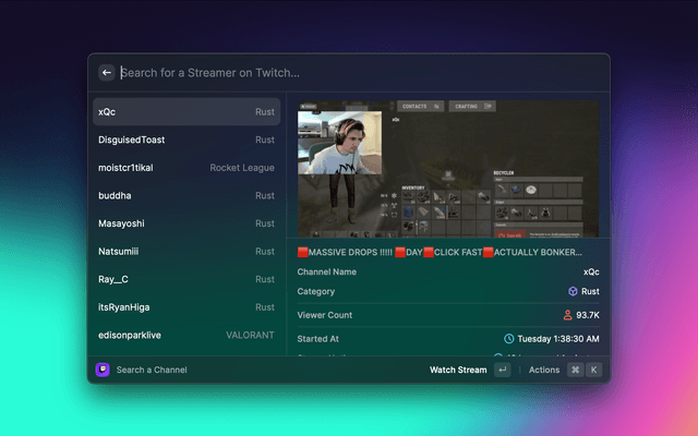 This extension used to require you to provide your own Client ID and Authorization Token obtained from a 3rd party application (twitchtokengenerator.com/quick/DvKMUdT92X or twitchapps.com/tokengen). This is no longer the case and we now use Raycast to manage the authentification process. This new process is much more secure and easier to use, but we've kept the old fields for retro-compatibility.