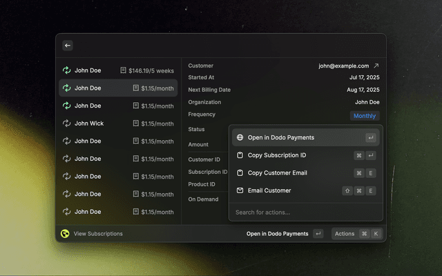 - Search for "Dodo Payments" and select any command