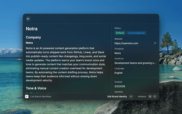 View, manage, and create content with Notra directly from Raycast.