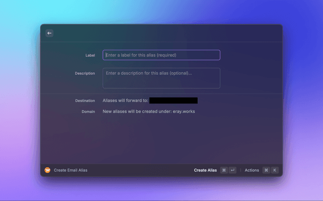 Create, list, edit, and delete Cloudflare email aliases directly from Raycast.