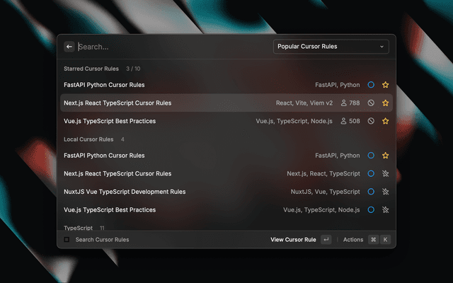 • Starring System: Save up to 10 favorite cursor rules for quick access.
