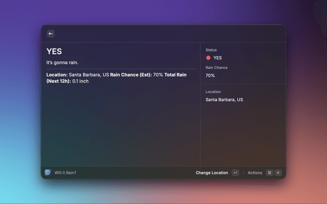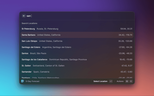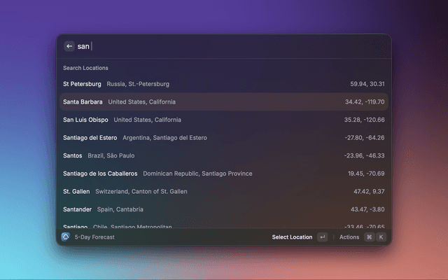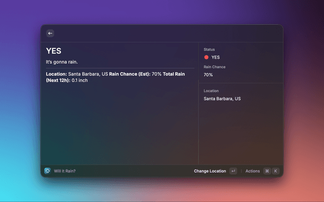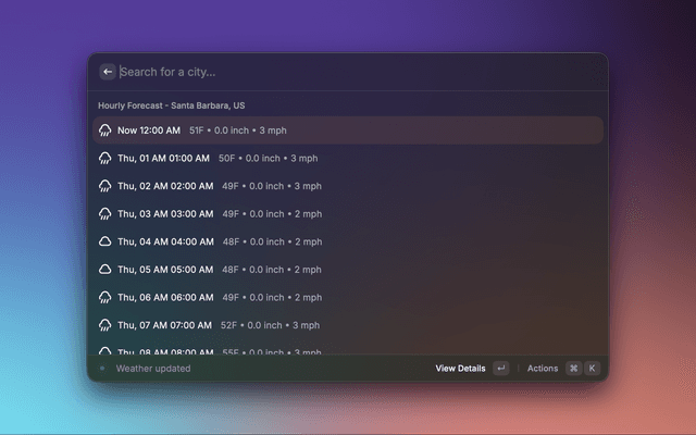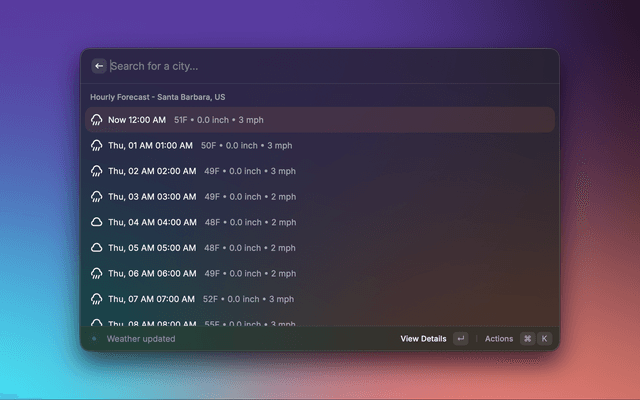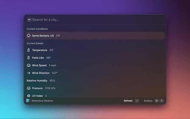 Check the weather on Meteoblue directly from Raycast.