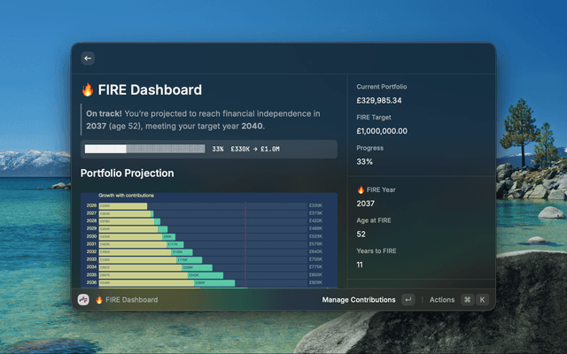 | FIRE Dashboard | Project your path to financial independence with visual charts |