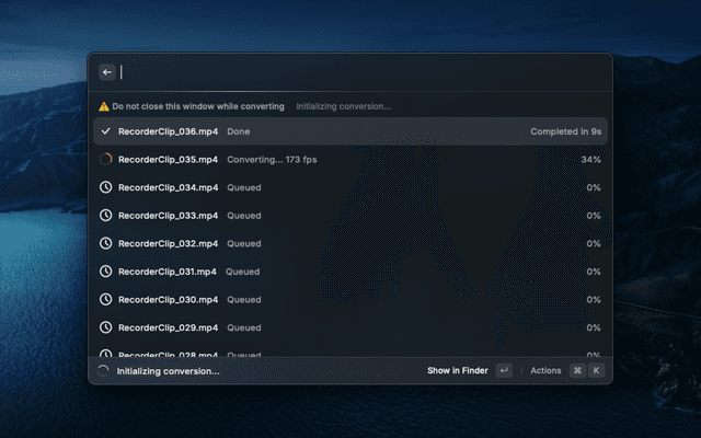 A powerful Raycast extension to convert video and audio files into various formats with ease.