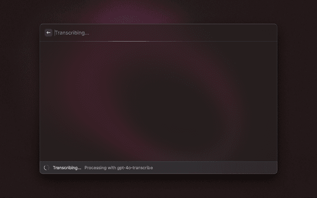 - Usage: Opens directly in recording mode, press Enter to stop and transcribe