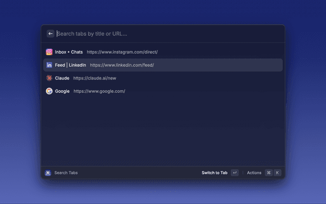 Navigate open tabs, bookmarks, and the web in Helium browser.