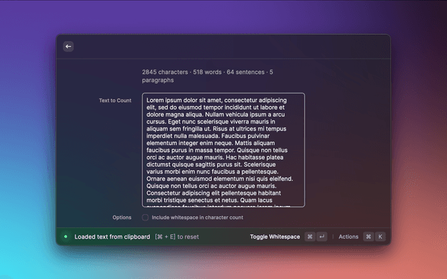 - The command will automatically count any text in your clipboard. To clear, use