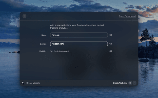Databuddy is a privacy-first web analytics platform — view your websites, links, feature flags, and funnels from Raycast.