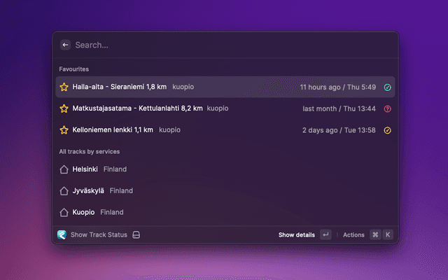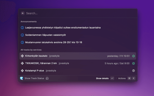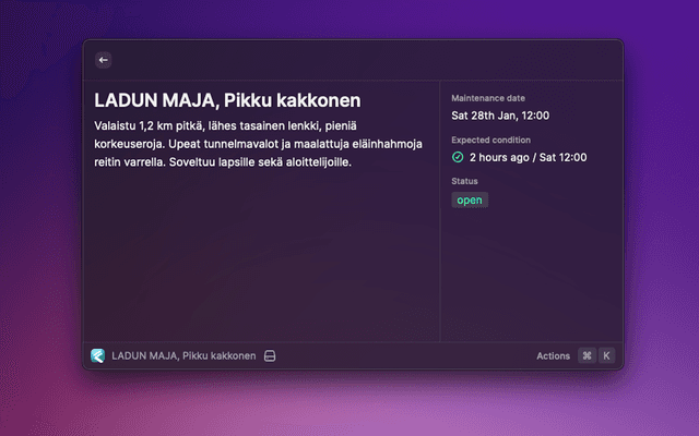 Show maintenance status for outdoors activity tracks like skiing or skating. Fetching data from the Fluent backend(s):