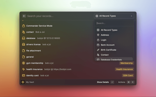 My Vault CommandPurpose: View and interact with all your vault records.
