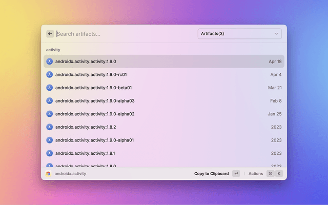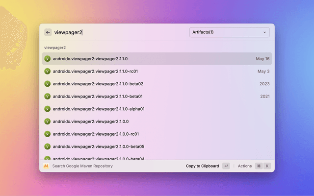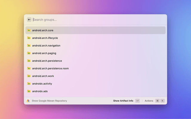 Show and search for artifacts in Google's Maven repository.