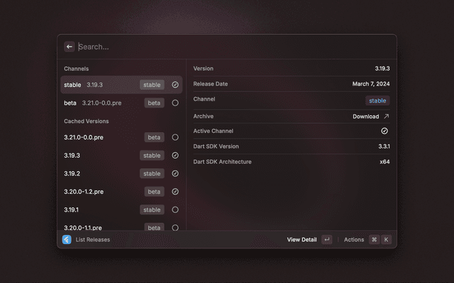 Easily manage Flutter SDK versions with FVM.