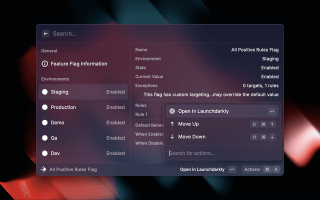 • ⌘ + ↵ Open flag in LaunchDarkly web UI