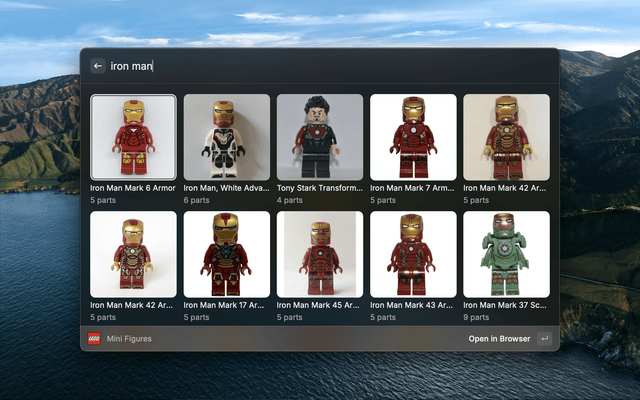 Look up LEGO sets, colors, bricks etc.