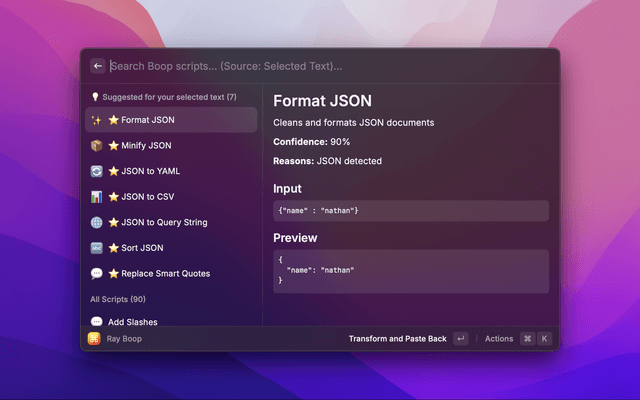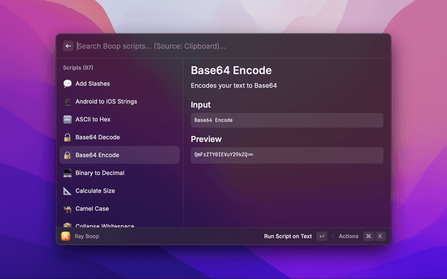 Port of Boop to Raycast. Run any Boop script on clipboard content.