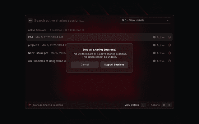 • Active Session Management: View and manage all your ongoing sharing sessions