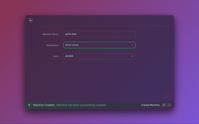 orbctl (which this extension uses) prompts the user for a password during machine creation. We can't 'answer' the prompt via the raycast API. Use orbctl or orb cli if you need to set a username with password when creating a machine. Example: orbctl create -u <user> -p <distro> <machine-name>.