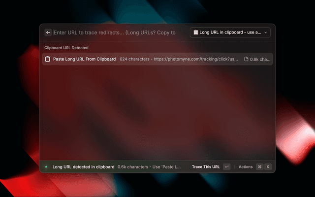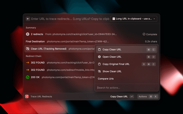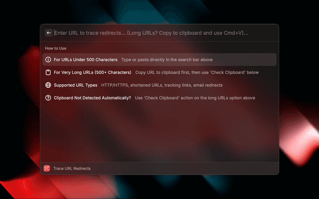 A powerful URL redirect tracer for Raycast that helps you see where links really lead before clicking them. Like wheregoes.com for Raycast.