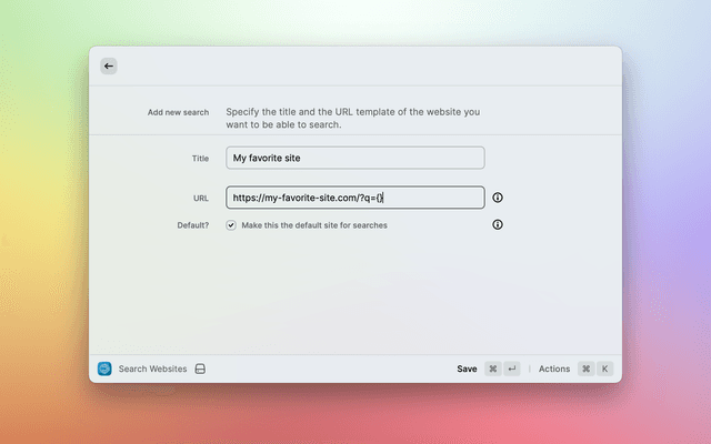 searching various sites on the web. For instance, when using DuckDuckGo, !w macOS