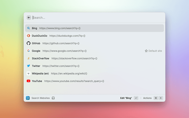 DuckDuckGo supports "bangs", text-based shortcuts for