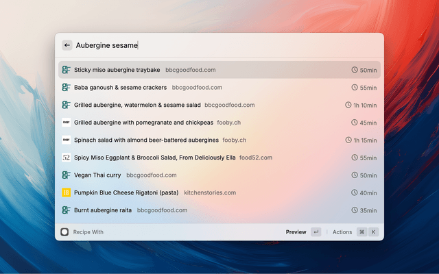 • If the containing webpage uses the JsonLD version of https://schema.org/Recipe notation, the recipe will be extracted and can be viewed directly in Raycast.