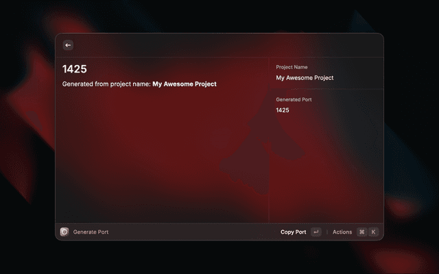 • Quick Access: Generate ports directly from Raycast with a simple command
