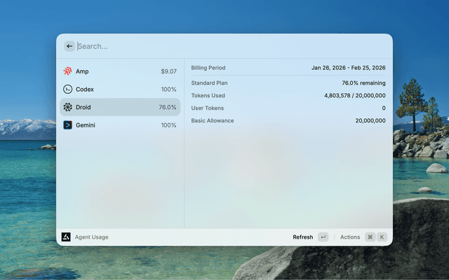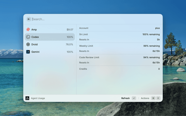 Codex Authorization Token).Authorization header value⌘⌥↑ / ⌘⌥↓ to reorder agents in the list| Shortcut | Action |