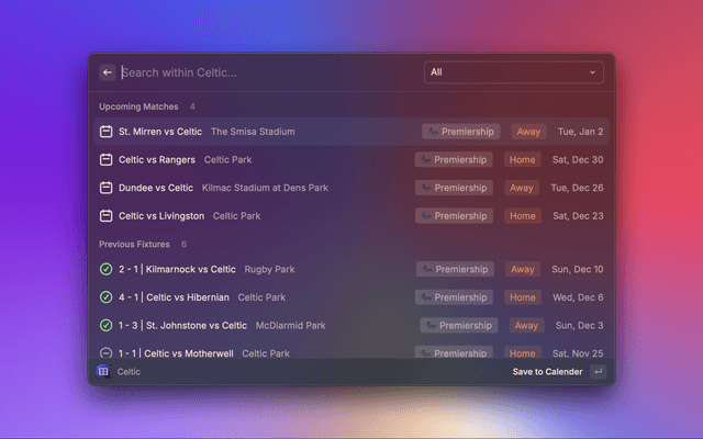 Calendar NameName of the calendar on Calendar.app you wish to save upcoming fixture datesCalendartrue