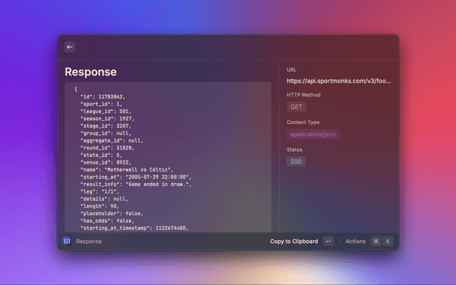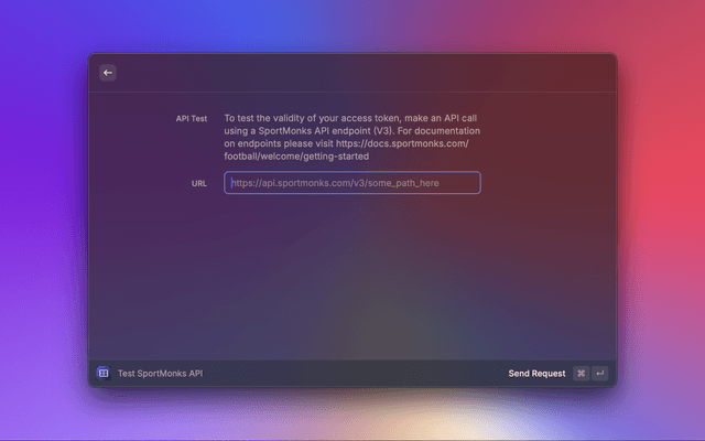 Trigger a simple API endpoint test using a SportsMonk API token to identify a successful response or not