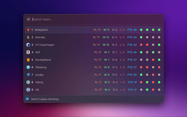 All preferences can be customized through Raycast Settings > Extensions > Footy Report