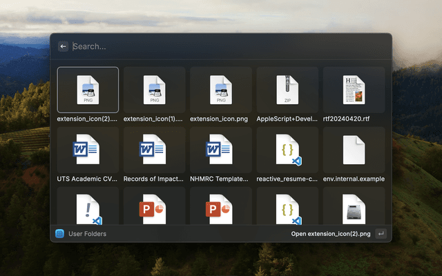 In the extension preferences you can change the layout of the List Downloads and List User Folders commands to a List or a Grid, and when selecting a Grid you can choose any number of items wide from 3 to 8 for very large to very small items.