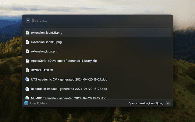 command gives you access to view a searchable list of all folders located there and open your selection in Finder.
