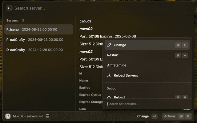 All preferences properties list that can be customize through Raycast Settings > Extensions > Mikr.Us